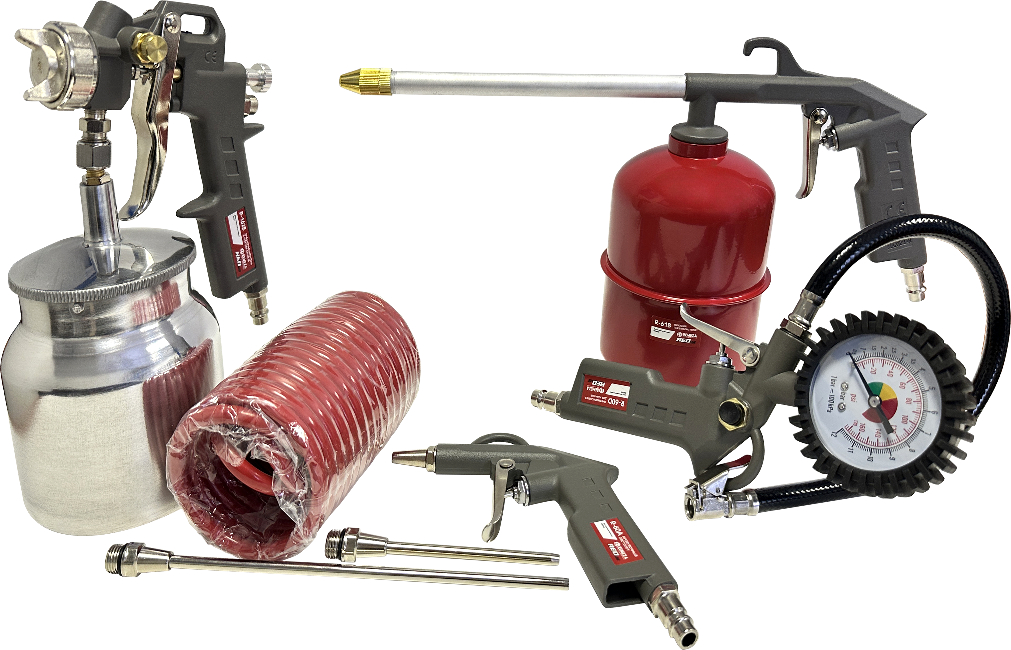 - пневмопистолет для накачки шин с манометром R-60D, с механическим манометром, длина шланга 400 мм;